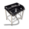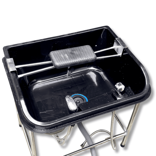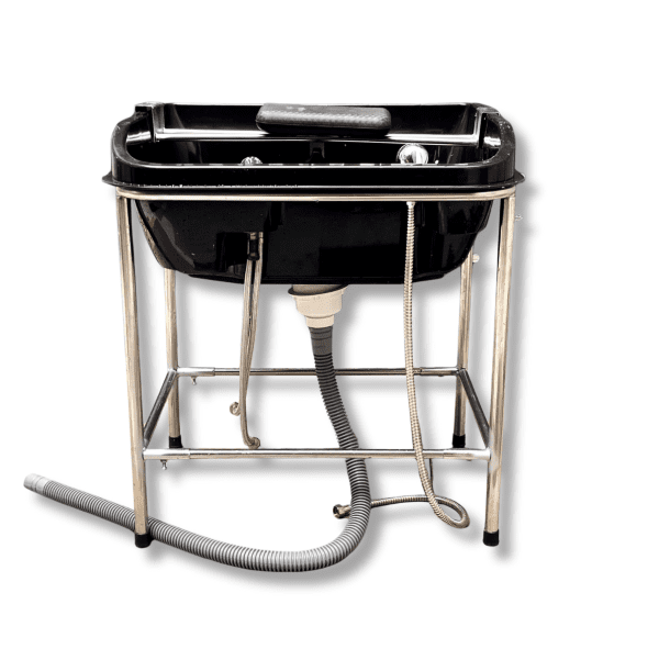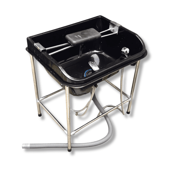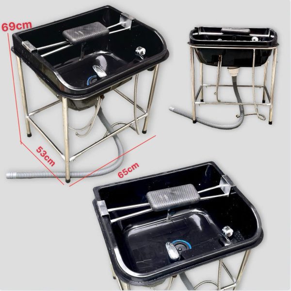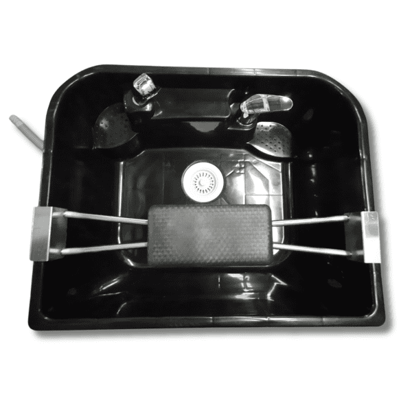 Bồn gội đầu nhựa vuông và chân có thiết kế và công dụng chuyên biệt phục vụ cho các dịch vụ chăm sóc tóc và thư giãn tại salon tóc, spa, hoặc các cơ sở dưỡng sinh.