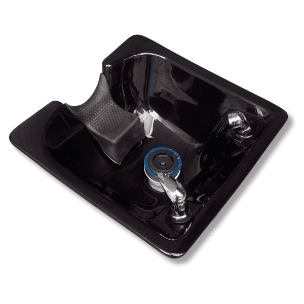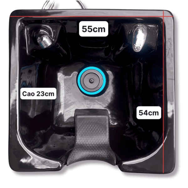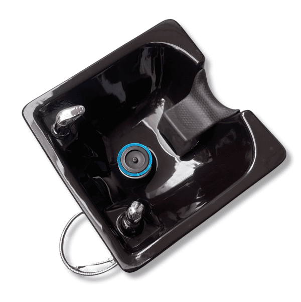 Bồn Sứ Vuông Gội Đầu Dưỡng Sinh : Đây là một bồn gội đầu sứ vuông (hay còn gọi là chậu gội đầu) màu đen, thường được sử dụng trong các tiệm làm tóc, spa, hoặc cơ sở dưỡng sinh.