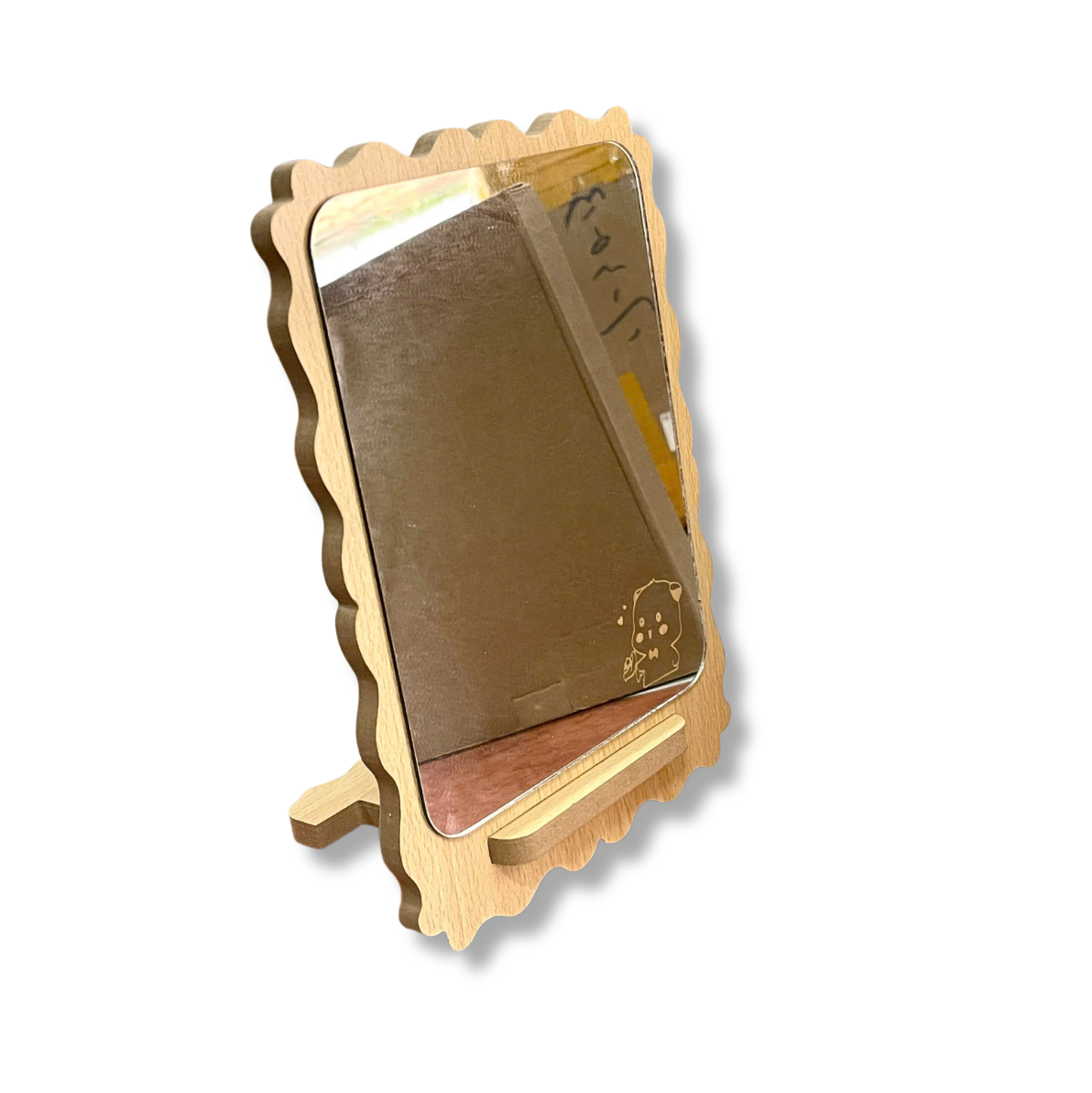 • Kiểu dáng: Gương có hình dáng lượn sóng mềm mại , tạo điểm nhấn decor cho không gian trang điểm hoặc bàn làm việc.