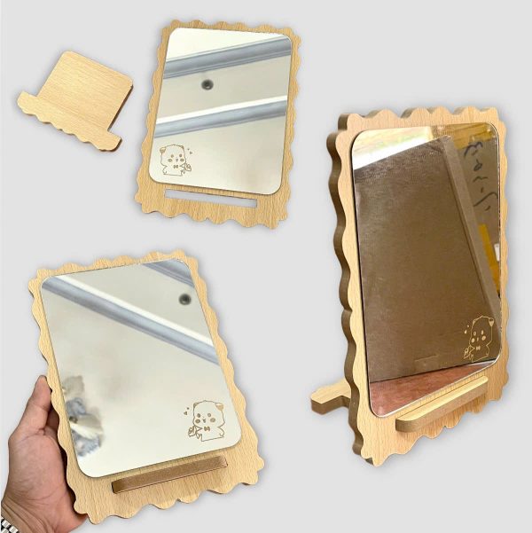 - Kiểu dáng: Gương có hình dáng lượn sóng mềm mại , tạo điểm nhấn decor cho không gian trang điểm hoặc bàn làm việc.Công dụngGương gỗ để bàn là vật dụng đa năng: