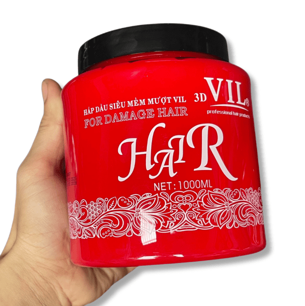 Hấp Dầu Ủ Tóc 3D VIL Đỏ 1000ml : Hấp dầu siêu mềm mượt VIL 3D (còn gọi là Kem ủ tóc VIL đỏ), một sản phẩm chăm sóc tóc chuyên nghiệp giúp phục hồi tóc hư tổn.