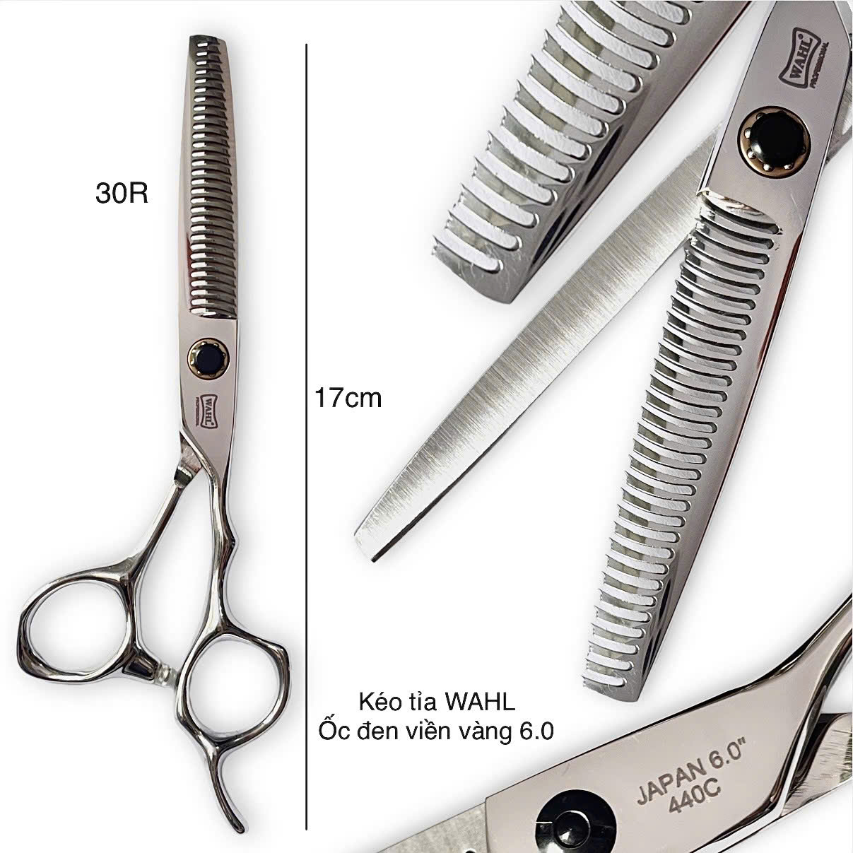 Kéo cắt tỉa WAHL Japan 6.0 Ốc Đen Viền Vàng là lựa chọn phù hợp cho cả thợ tóc chuyên nghiệp và những người mới