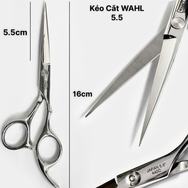 Kéo Cắt Wahl Mũi Nhọn Trắng 5.5 inch : là một loại kéo cắt tóc chuyên nghiệp được làm từ thép Nhật Bản 440C không gỉ, có độ bền cao và độ sắc bén tốt. Kéo có kích thước 5.5 inch và được thiết kế với lưỡi convex, phù hợp cho việc chải mỏng, cắt nét và bấm viền