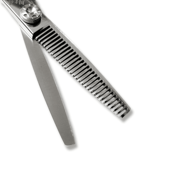 - Kiểu răng: Kéo có thiết kế 30 răng , là loại răng hẹp, phổ biến nhất trong các salon. Kiểu răng này giúp tỉ lệ ăn tóc (lượng tóc được loại bỏ sau mỗi lần cắt) nằm trong khoảng 15%-25%, tạo hiệu ứng mỏng tóc tự nhiên mà không để lại vết cắt rõ ràng.Công dụng chính của kéo tỉa CHUANFUYU C-530-FYT là: