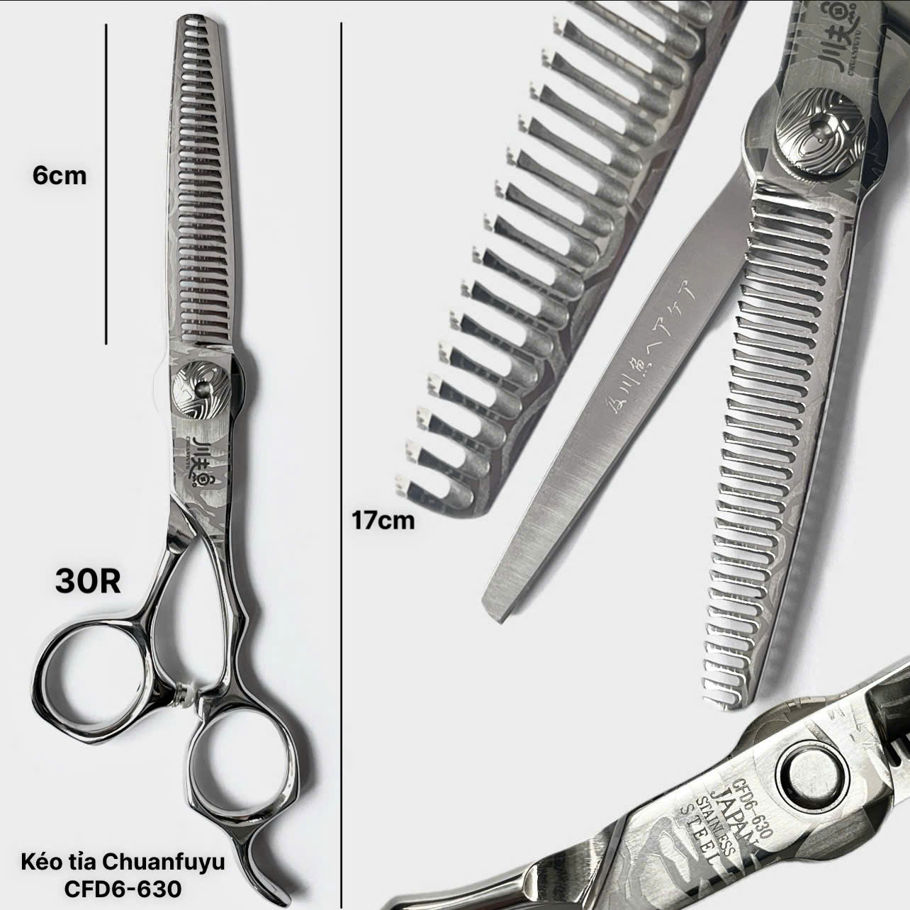 Kéo Tỉa ChuanFuyu Hoa Văn CFD6-630 : là một loại kéo tỉa tóc chất lượng cao, thường được các thợ làm tóc chuyên nghiệp tin dùng.