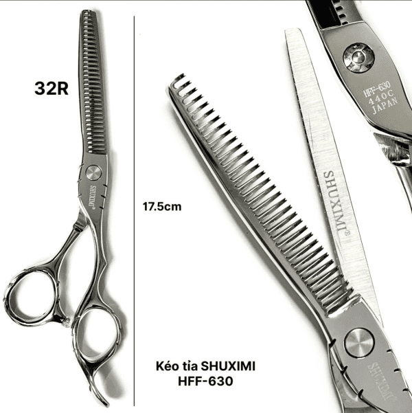 - Đa năng: Có thể sử dụng cho cả kỹ thuật tỉa tóc khô và tóc ướt.Độ tỉ lệ ăn tóc (tỷ lệ phần trăm tóc được loại bỏ) của kéo tỉa tóc SHUXIMI HFF-630 nằm trong khoảng 25% đến 30% cho mỗi lần cắt.