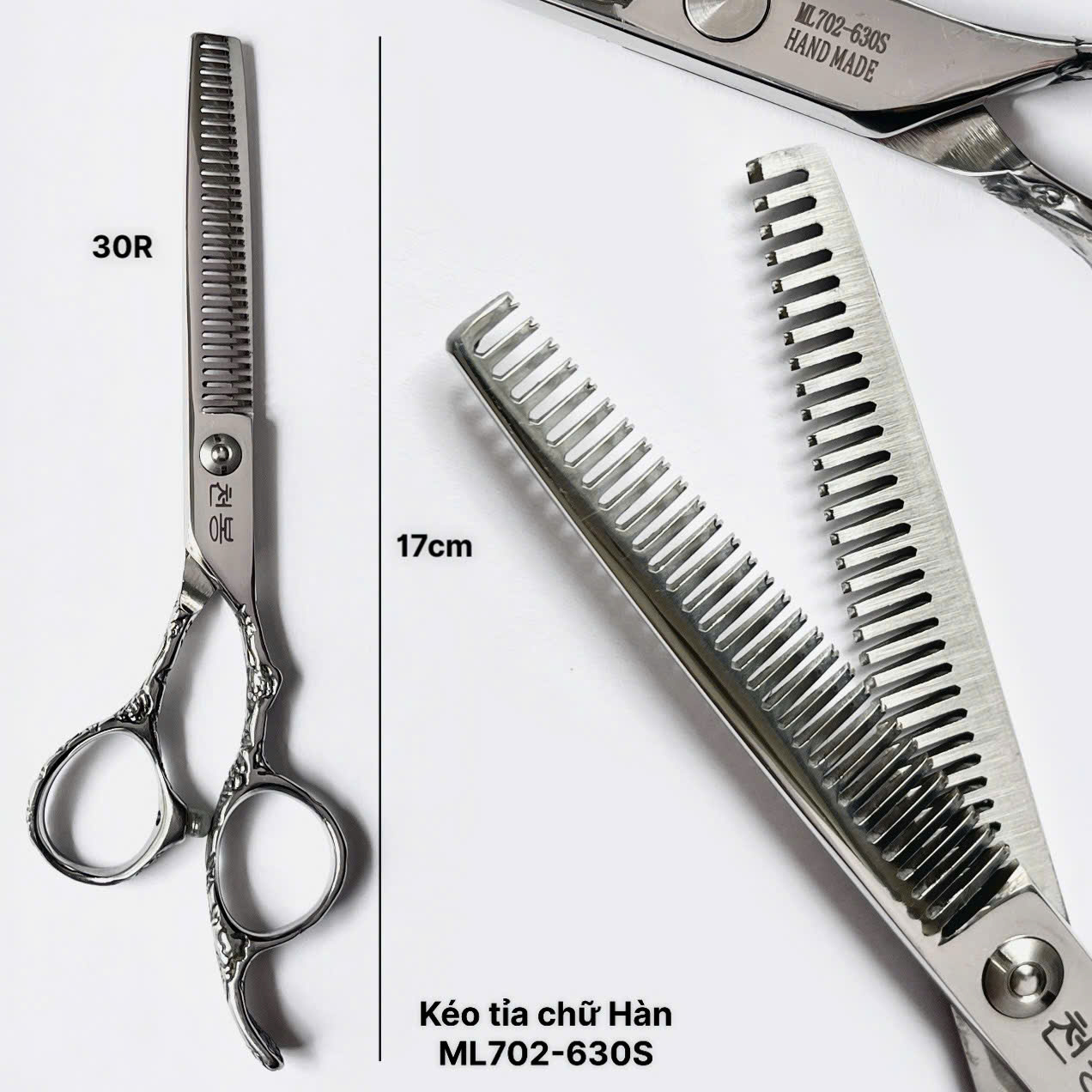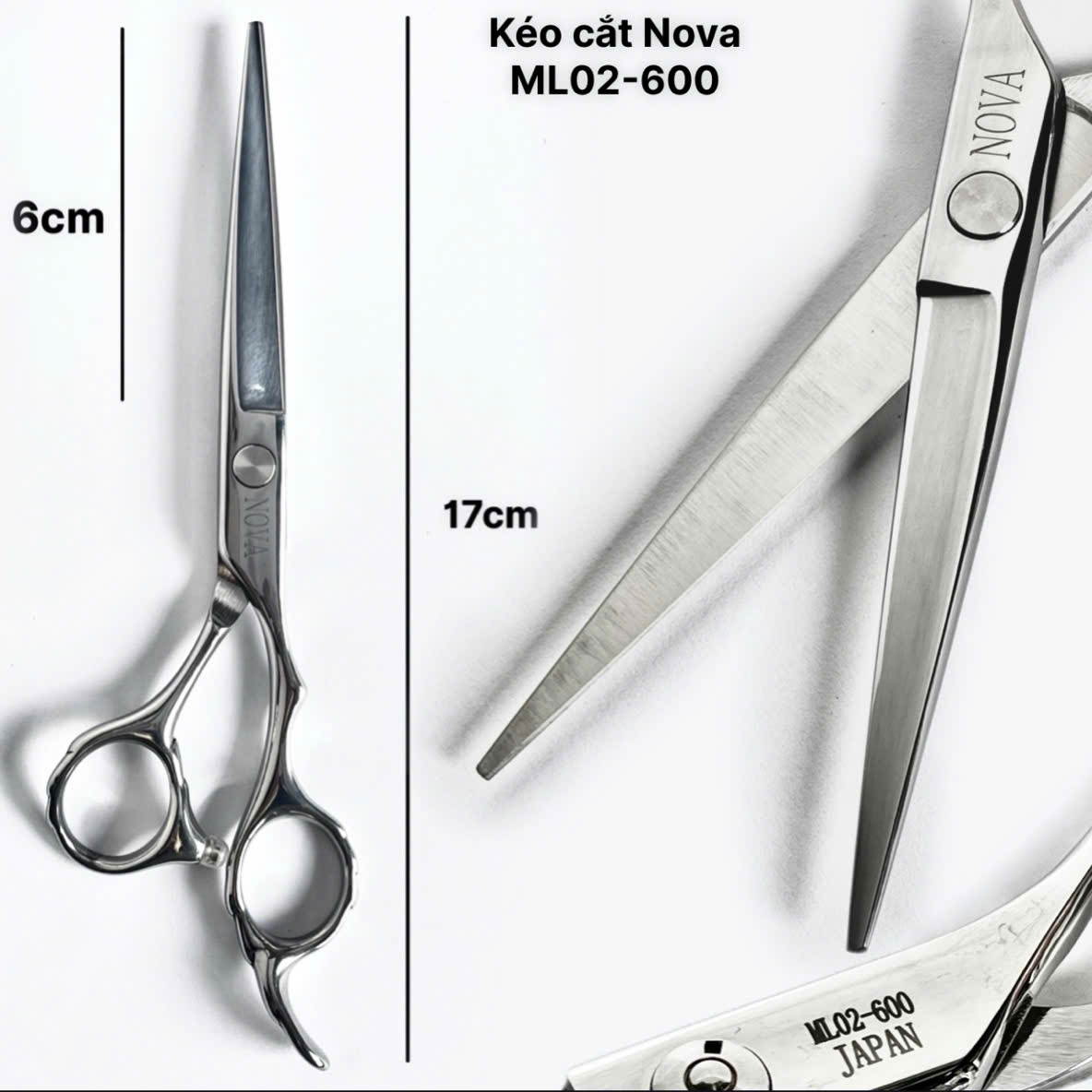 - Kích thước: Chiều dài tổng thể là 16cm (lưỡi kéo dài 6cm), là kích thước thông dụng phù hợp với đa số thợ cắt tóc.
