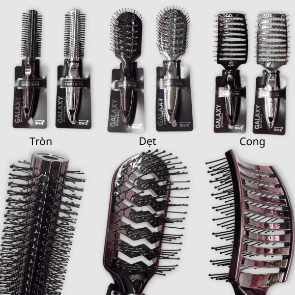 Lược Chải Sấy Mạ Crom Galaxy : Ba loại lược Galaxy Hair Comb trong hình ảnh có thiết kế và công dụng chuyên biệt, phục vụ các nhu cầu chăm sóc và tạo kiểu tóc khác nhau. Đây là những công cụ cơ bản giúp bạn chăm sóc và định hình mái tóc hiệu quả tại nhà hoặc trong salon. Lược Mạ Crom , Lược Galaxy