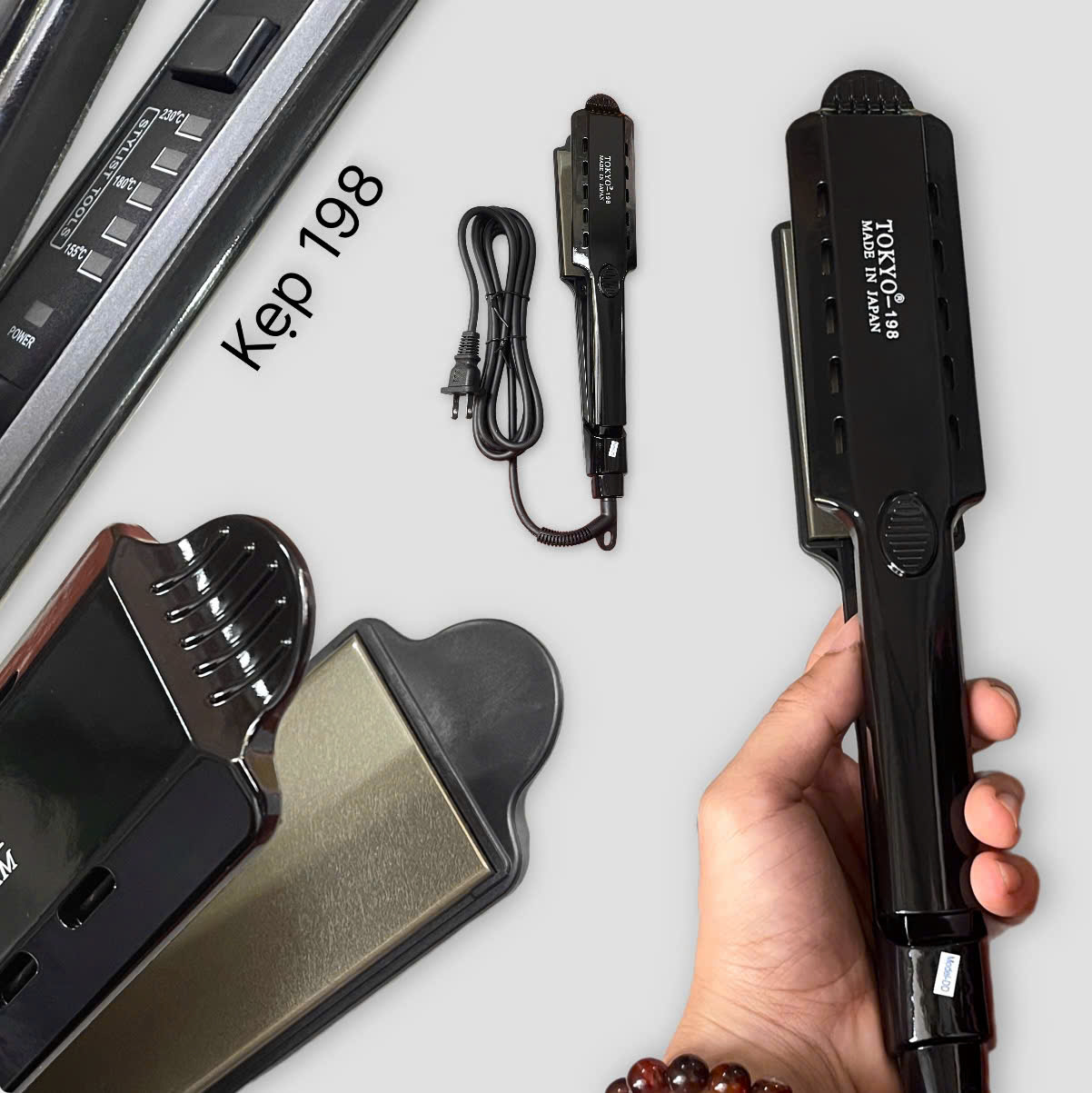 Máy Bấm Tóc Và Máy Kẹp Tóc Tokyo 198 : Máy kẹp tóc và bấm tóc Tokyo 198 là một dụng cụ tạo kiểu tóc đa năng, cho phép người dùng duỗi thẳng tóc hoặc tạo kiểu tóc bấm/gãy (dập xù)