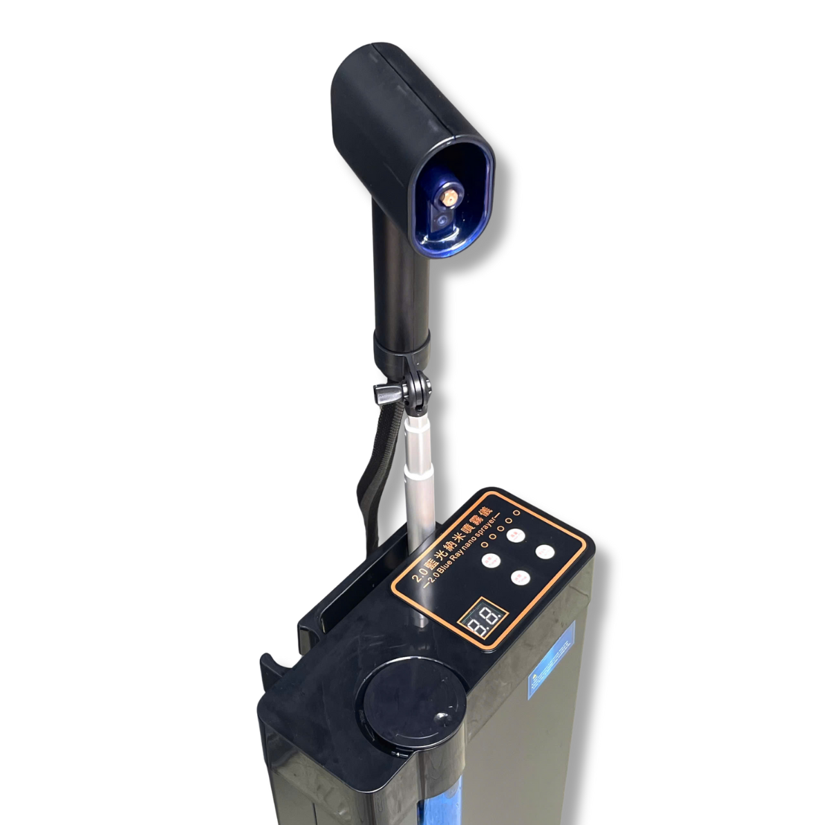 Máy Phun Sương Nano 2.0 Blue Ray Hỗ Trợ Phục Hồi Tóc : là máy phun nano phục hồi tóc 2.0 Blue Ray. Thiết bị sử dụng công nghệ tạo sương nano bằng cách phân tách các phân tử nước thành các hạt siêu nhỏ. Máy có tích hợp đèn LED màu xanh (Blue Ray), có thể hỗ trợ kích thích màu tóc hoặc tăng cường hiệu quả dưỡng chất