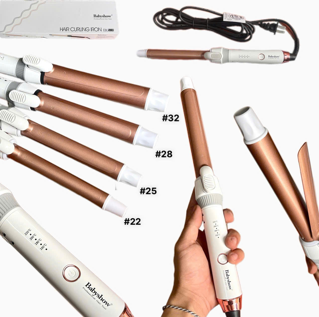 Máy Uốn Lọn Xoăn Tóc Hiệu BabyShow : Một thiết bị tạo kiểu tóc xoăn lọn to, nhỏ máy có thiết kế chống dính tóc, cách điện, cách nhiệt