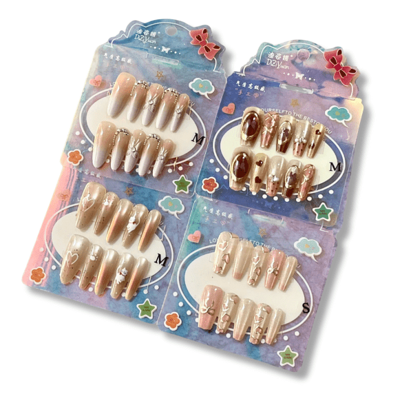 - Dán móng: Bôi keo dán chuyên dụng (thường đi kèm trong hộp) hoặc miếng dán silicon lên móng thật hoặc mặt sau móng giả. Sau đó, úp móng giả lên móng thật và giữ chặt khoảng 10 giây để cố địnhCách tháo gỡĐể tháo móng an toàn mà không hại móng thật, bạn có thể ngâm tay trong nước ấm pha xà phòng hoặc sử dụng dung dịch acetone chuyên dụng trong khoảng 15-30 phút cho đến khi keo mềm ra, rồi nhẹ nhàng gỡ móng.