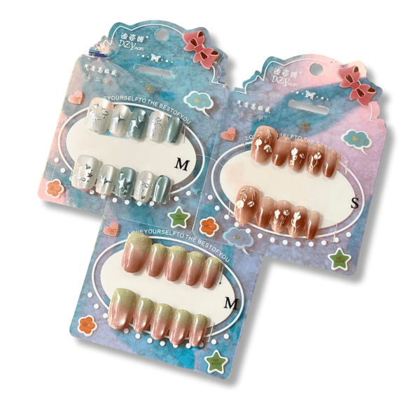 - Chọn kích cỡ: Ướm thử các móng giả và chọn kích thước phù hợp nhất với từng ngón tay. Nếu cần, có thể dùng dũa để điều chỉnh hai bên cạnh móng giả cho vừa vặn.