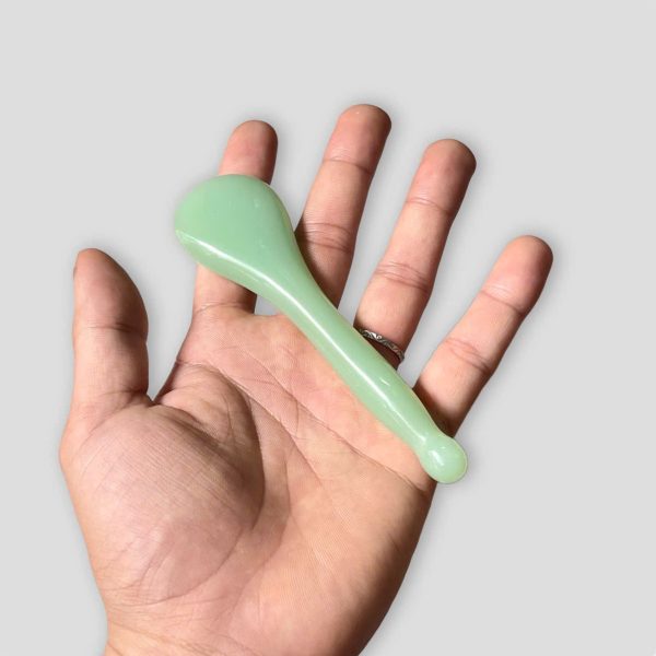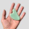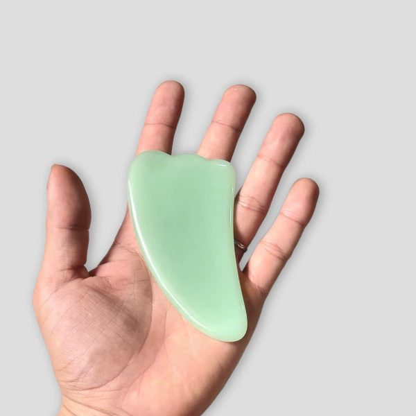 - Dùng cạnh dài của ngọc để cạo vùng gò má, cạnh nhỏ hoặc phần lõm để cạo quanh mắt và mũi để giảm nếp nhăn.