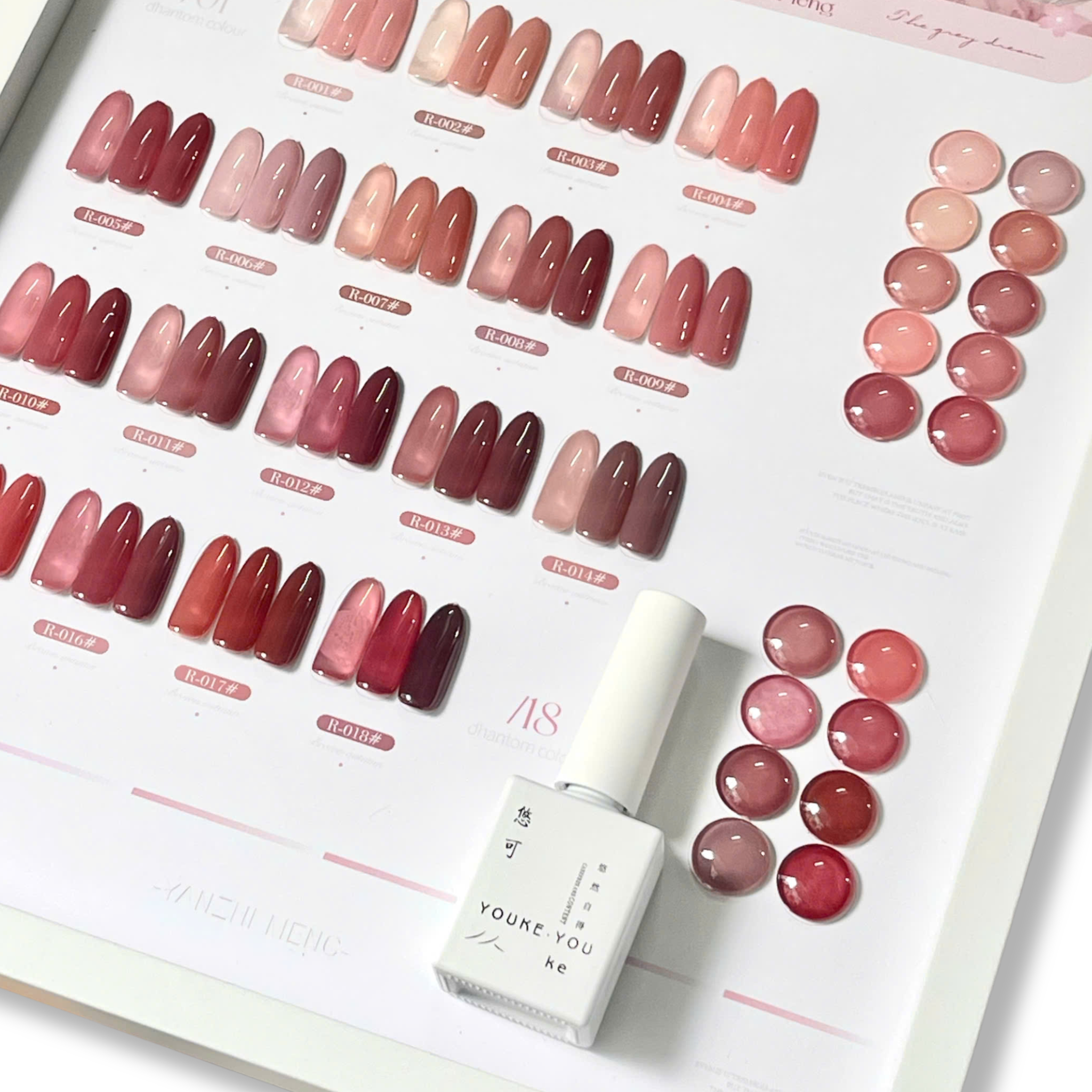 • Màu sắc đa dạng: Bộ 18 màu được phối hợp thành nhiều tông khác nhau (ví dụ: tông nude hồng, tông pastel), phù hợp cho nhiều phong cách và sở thích làm móng.
