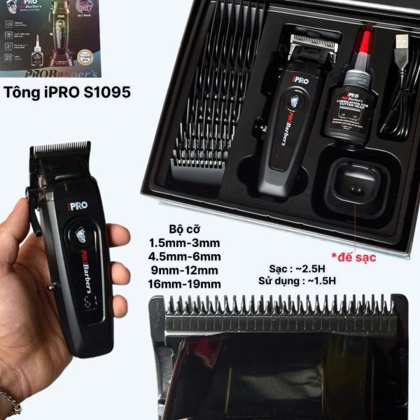 Tông Đơ Cắt iPro Barber S1095 : một sản phẩm tông đơ cắt tóc chuyên nghiệp, nổi bật với động cơ mạnh mẽ và lưỡi cắt sắc bén, phù hợp cho cả thợ cắt tóc và sử dụng tại nhà.