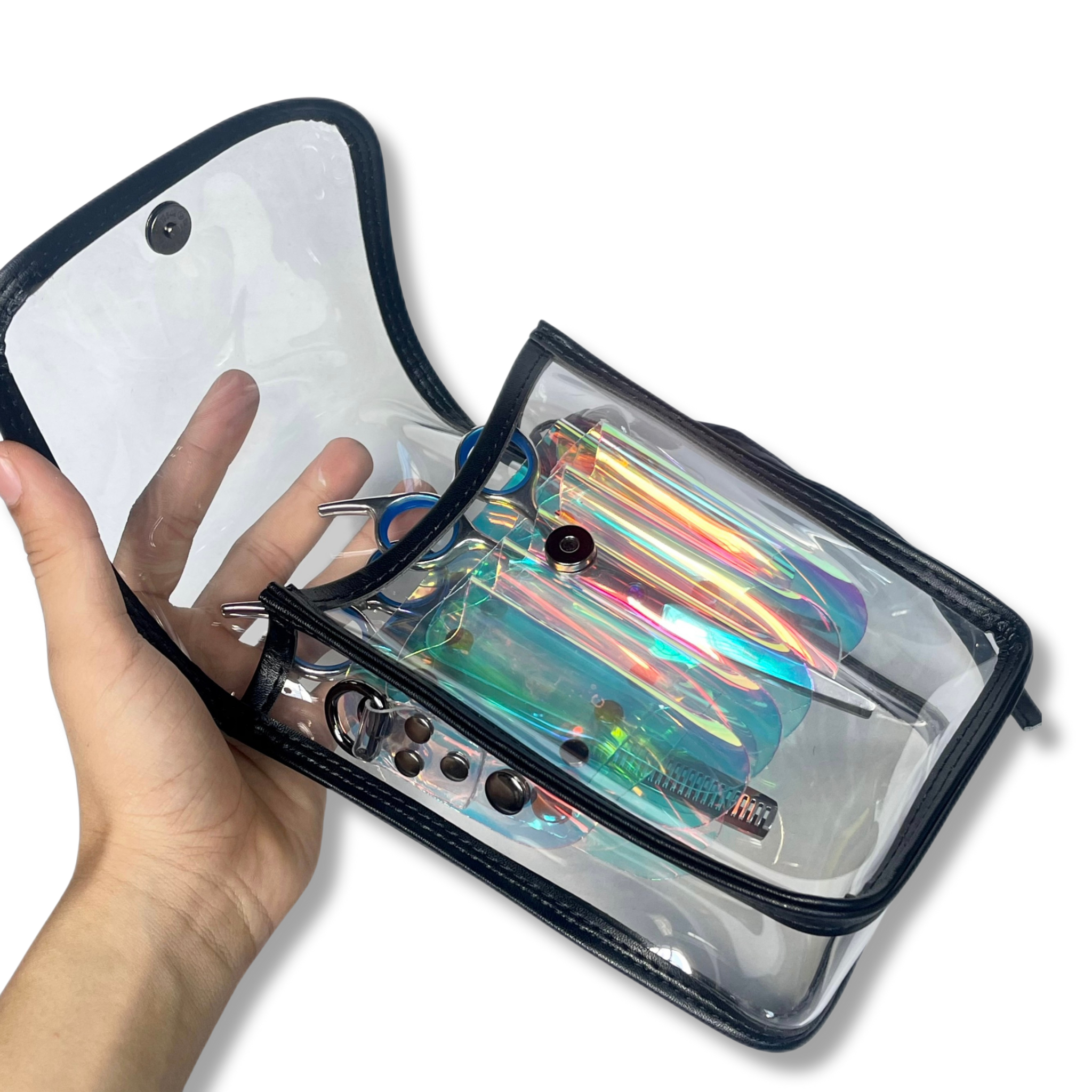 - Gọn nhẹ và tiện lợi: Túi đựng kéo trong suốt thường có trọng lượng nhẹ, dễ dàng mang theo, phù hợp cho những người thợ cắt tóc thường xuyên di chuyển.