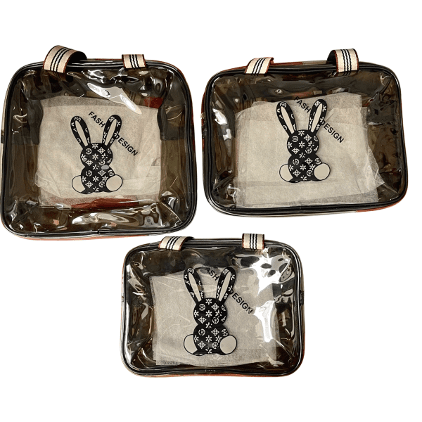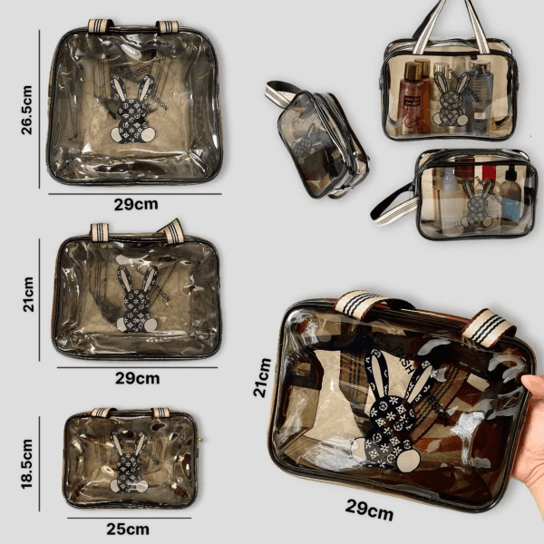 Túi Đựng Mỹ Phẩm Hình Thỏ Bearbrick 3 Size :Túi đựng mỹ phẩm 2 ngăn Hình Thỏ Bearbrick là một lựa chọn phổ biến nhờ thiết kế chống nước và tiện dụng, phù hợp cho việc đi du lịch hoặc sử dụng hàng ngày. Túi thường được làm từ chất liệu PVC trong suốt giúp bạn dễ dàng nhìn thấy và lấy đồ bên trong.